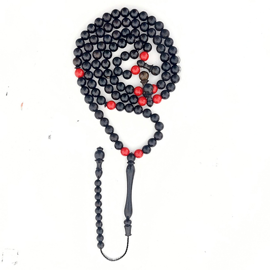 مسبحة خشب الأبانوس المطعم باحجار المرجان - مسبحة الحمرة - ١٠٠ حبة