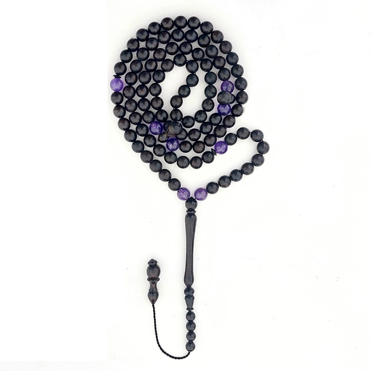 مسبحة خشب الأبانوس المطعم بأحجار الاماتيست - مسبحة السلطانة - ٩٩ حبة