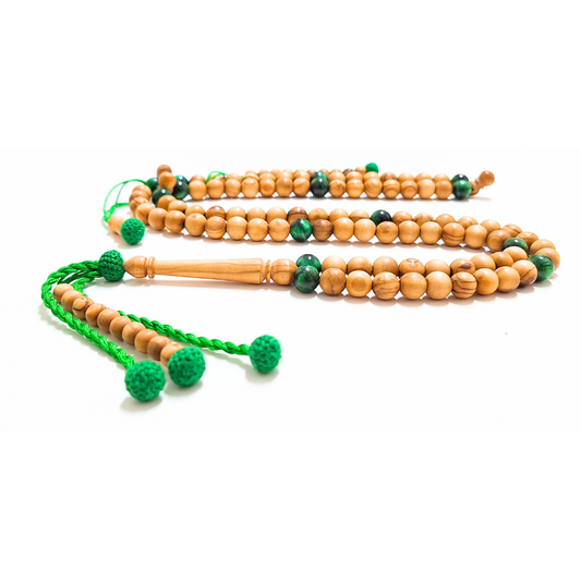مسبحة خشب الأبانوس المطعم باحجار العقيق الأخضر - مسبحة المدينة - ١٠٠ حبة