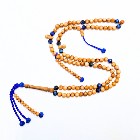 مسبحة خشب الزيتون المطعم بحجر عين النمر - مسبحة الوطن - ١٠٠ حبة