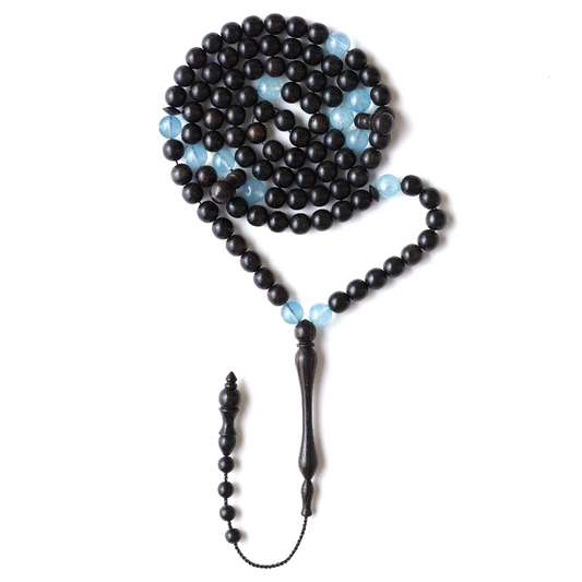 مسبحة خشب الأبانوس المطعم باحجار الجرين امازونيت - مسبحة الأعماق - ١٠٠ حبة