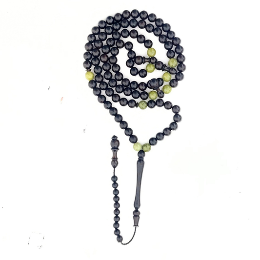 مسبحة خشب الأبانوس المطعم باحجار الجرين امازونيت - مسبحة الأعماق - ١٠٠ حبة