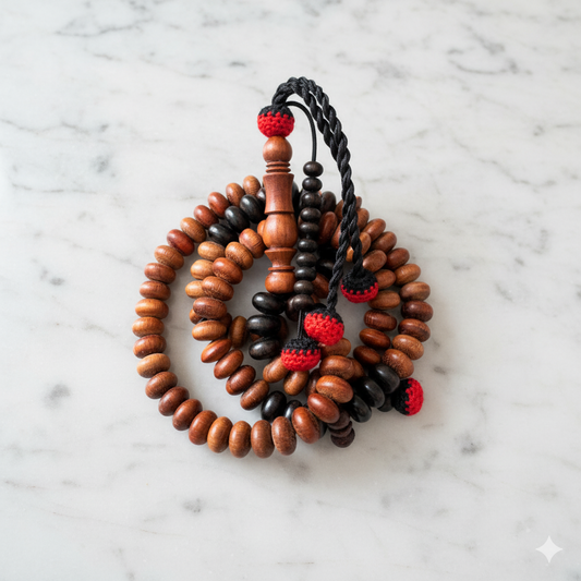 مسبحة خشب الورد المطعم بالأبانوس - مسبحة الورد - ١٠٠ حبة