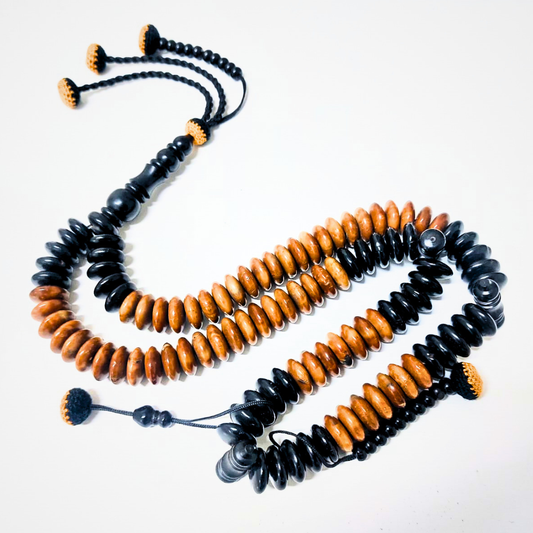 مسبحة المنجور المطعم بالأبانوس والكوك والعظم - مسبحة القمة - ١٠٠ حبة