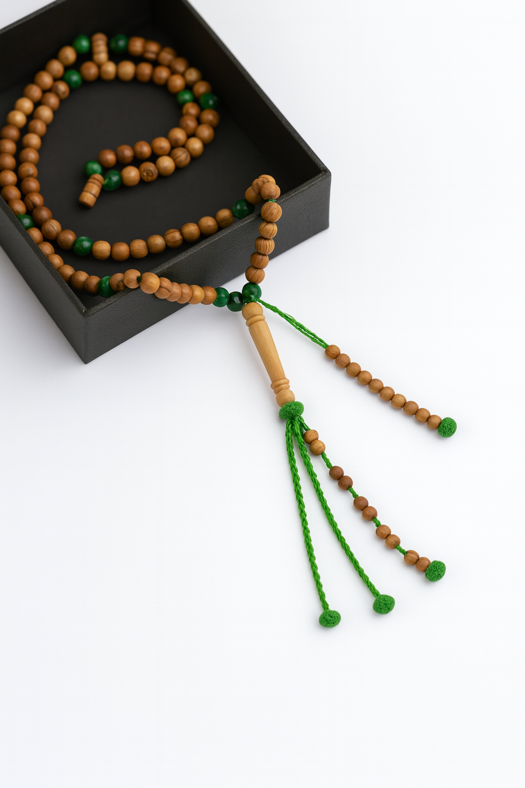 مسبحة خشب الزيتون المطعم بحجر عين النمر - مسبحة الوطن - ١٠٠ حبة